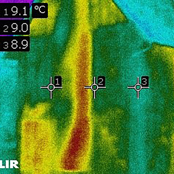 The house had a history of internal and external staining to finishes and failure of plaster. Various repair methods had been tried, and all had failed. I inspected the house and recommended further investigation by a conservator. Infrared thermography, liquid and conductivity moisture and nitrate salt tests were undertaken and informed the repair specification.